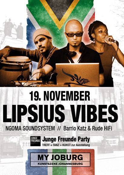 produktive Kunstszene in Johannesburg (Laufzeit: 26. Oktober 2013 bis 5. Januar 2014). Die JUNGEN FREUNDE der Staatlichen Kunstsammlungen feiern diese spannende Ausstellung am Vorabend des Buß- und Bettages mit der Party LIPSIUS VIBES. Bis Mitternacht sind Live-Speaker in der Ausstellung, die mit Euch über „My Joburg“ ins Gespräch kommen wollen, dazu versprechen DJ und Liveact eine aufregende Nacht.
